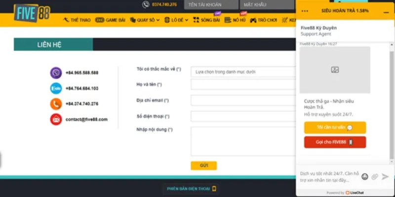 Cách thức liên hệ five88 nhanh chóng bet thủ cần nắm rõ