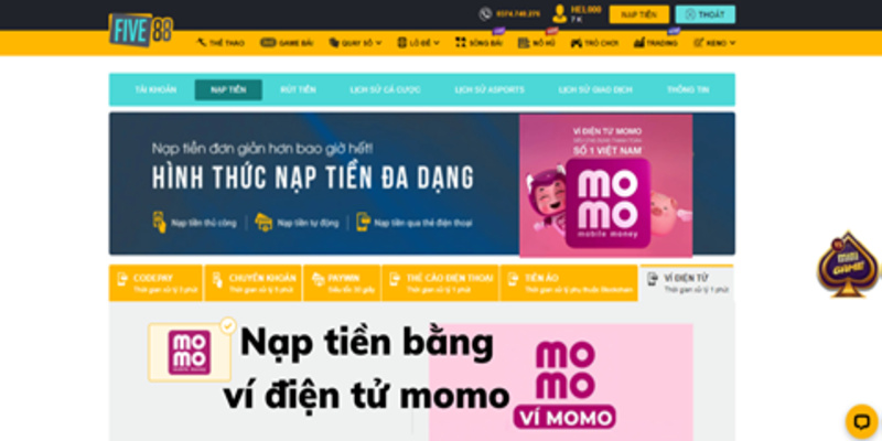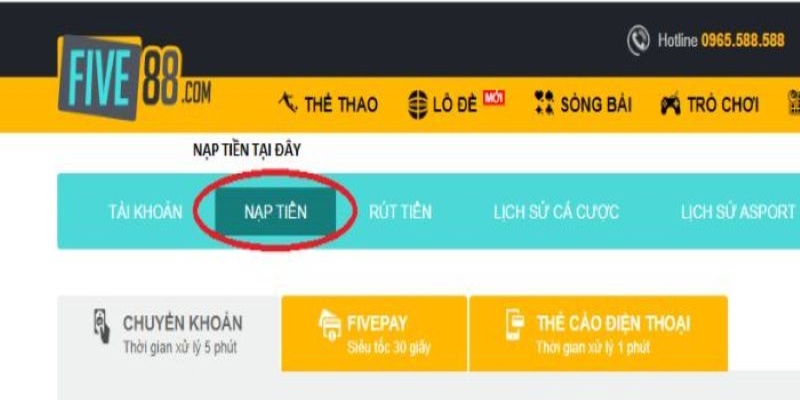 Các cách nạp tiền five88 và hướng dẫn quy trình nạp cụ thể