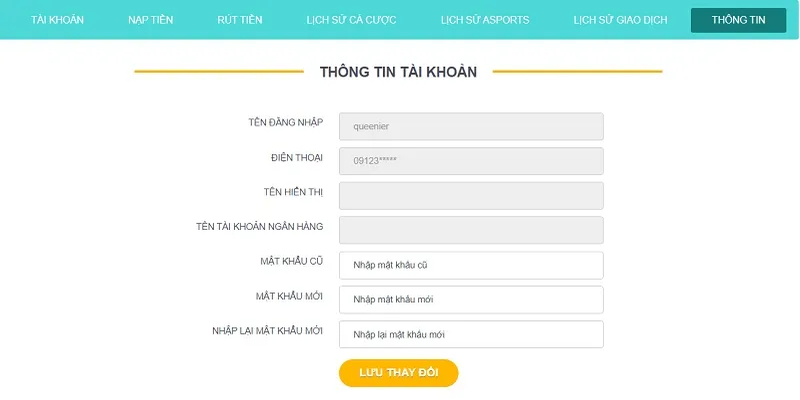 Thông tin tài khoản nhận thưởng bắt buộc phải chính chủ. Đặc biệt, tên chủ tài khoản ngân hàng phải trùng khớp với họ tên đã đăng ký trước đó với nhà cái. Ví dụ: Tên đăng ký Five88 là Nguyễn Văn A, nhưng tên tài khoản thanh toán lại là Nguyễn Văn B, thì giao dịch sẽ không được tiến hành.